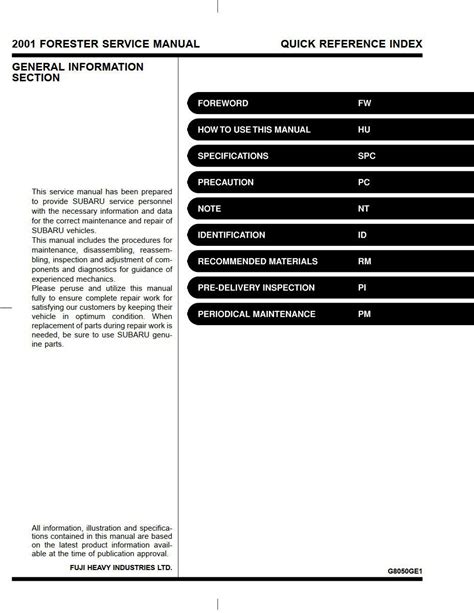 Presently you are looking with regard to an 2001 Subaru Forester Free Service Manual example that we provide here in some form of document formats such as PDF, Doc, Energy Point, and in addition images that will make it easier for you to create an 2001 Subaru Forester Free Service Manual yourself. For a more clear look, you are able to open some examples below. All the examples about 2001 Subaru Forester Free Service Manual with this web site, we get from several sources so you can create a better file of your own.
